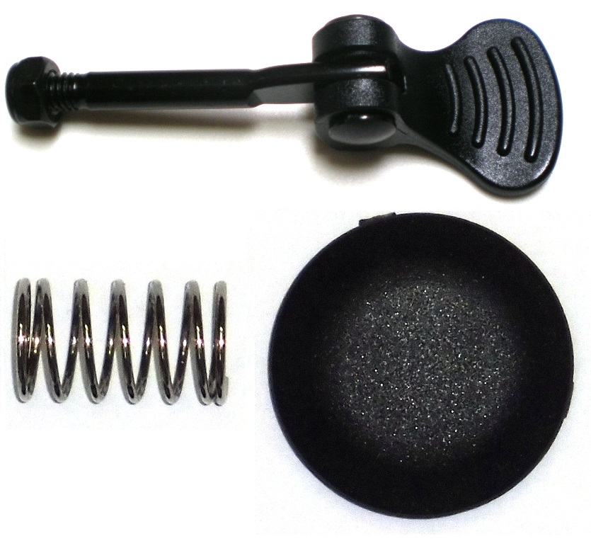 Clip voor het ontgrendelen en vergrendelen van de duwbeugel van de Sky Plus, Qtro Plus en Duo Plus. Inclusief veer en afdekdopje.